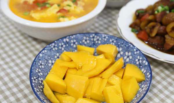 芒果是餐前開胃用的,這個天氣我會先放冰箱裡冰一下,等孩子快到傢瞭再切,這樣吃起來新鮮,芒果去皮,切成塊狀,不用擔心弄臟手。