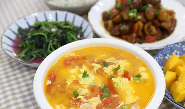 西紅柿蛋湯酸爽開胃,油鍋燒熱,先把西紅柿切成月牙狀入油鍋炒軟,然後加兩碗清水,大火煮開,水開後再多煮五分鐘,把西紅柿的味道煮出來,最後淋上雞蛋液,撒適量的鹽,出鍋後放上小蔥即可。