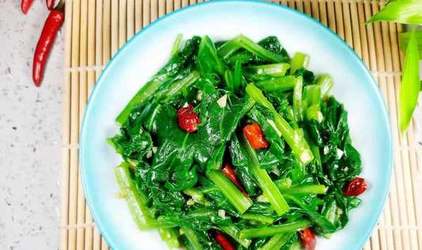 光盤貼士:這道菜在焯水時,還是建議要莖和葉分開焯水,因為莖有點厚需要多焯一會,這樣在吃的時候才不會覺得莖部口感不佳喲!