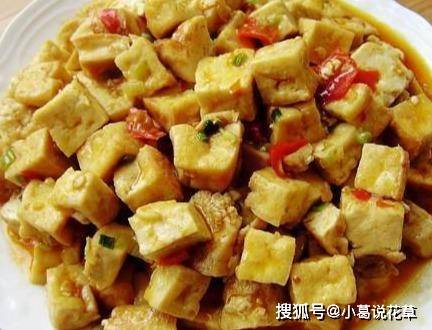 3、鍋底油燒熱,加入薑末和蒜末爆香。同時加入剛炸好的豆腐、蔥花、紅青椒末、生抽、蠔油、料酒和鹽,攪拌均勻即可上桌。盤子。