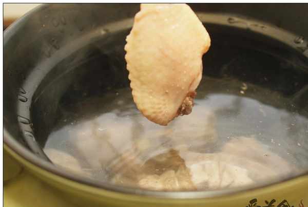 3.雞肉冷水下鍋,煮開,取出雞肉用清水沖洗掉浮沫。