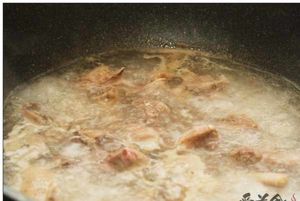 4.砂鍋煮開水,下雞肉,大火煮開後,轉小火煮1.5小時。