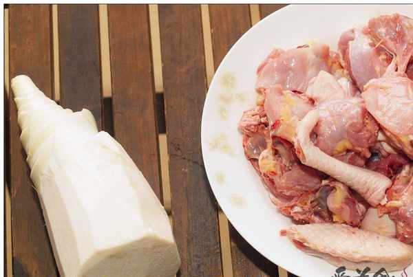 1.老母雞斬塊洗凈,竹筍剝去外殼,留下筍肉。