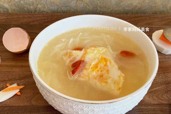 食材:白蘿卜1個,雞蛋2個,枸杞1把,蔥,鹽,雞精