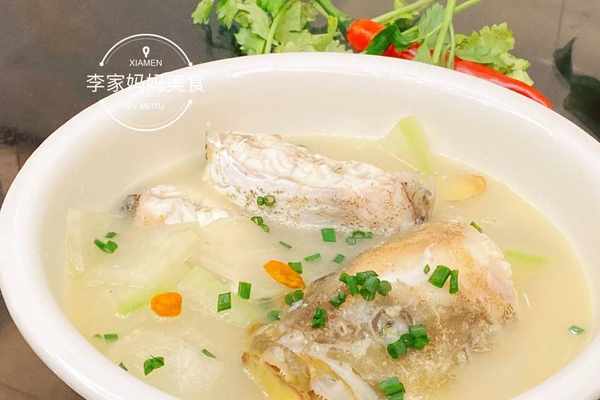 食材:石斑魚1條,冬瓜1塊,薑,蔥,鹽