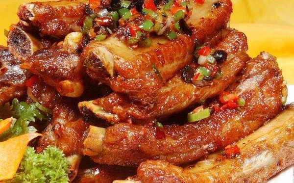 3、鍋內加入適量油,爆香蒜蓉和薑絲,放入排骨煎至兩面金黃。