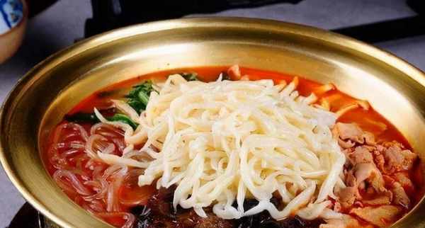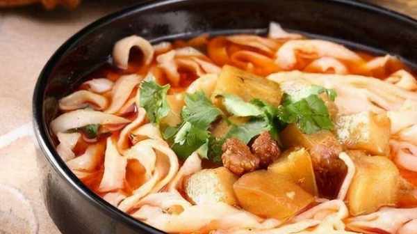 油潑面是在周代禮面的基礎上發展而來;秦漢稱湯餅;隋唐叫長命面,下入鍋內久煮不斷;宋元稱水滑面。油潑面最早在案板街,炭市街經營,西安很普遍。手工搟制又粗又寬面條,開水中煮熟後撈在碗裡,配上蔥花、肉絲、花椒粉、鹽面配料,撒厚厚的辣椒面,頓時滿碗紅光。