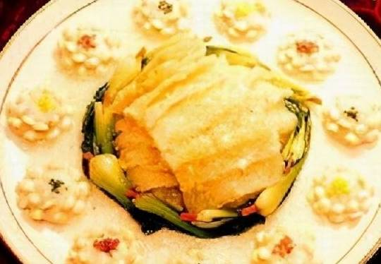 套四寶:套四寶是河南省開封市的一道傳統特色名菜,屬於豫菜;此菜原汁原味,醇香濃鬱、肥嫩不膩,多種味道。始創於清朝末年,由開封名廚陳永祥根據多年的烹飪經驗創制;顧名思義,“套四寶”就是把四種上好的食材套在一起進行烹制。套四寶絕就絕在集雞、鴨、鴿、鵪鶉之濃、香、鮮、野四味於一體,四隻全禽層層相套,個個通體完整,無一根骨頭。每當酒席宴會上過幾道菜之後,這道菜便用青花細瓷的湯盆端上,展現在食客面前的是那體形完整、浮於湯中的全鴨。其色澤光亮,醇香撲鼻。當食完第一層鮮香味美的鴨子後,一隻清香的全雞便映入眼簾;雞肉吃後,滋味鮮美的全鴿又出現的面前,最後又在鴿子肚裡露出一隻體態完整,肚中裝滿海參丁、香菇絲和玉蘭片的鵪鶉。一道菜肴多種味道,不肥不膩,清爽可口,回味綿長。