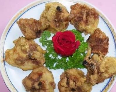 炸八塊:炸八塊又名八塊雞,是河南省開封市的一道傳統名菜,屬豫菜系。該菜品由童子雞、雞肫、雞肝、淀粉(蠶豆)等食材烹制而成。本地菜館頗有韻味的“幹摟炸醬不要芡,一隻雞子剁八瓣”的響堂報菜語,後半句就是指此菜而言。相傳清乾隆皇帝巡視河道駐驊開封時曾領略過它的風味,由此聞名於世,至今已有近200年的歷史。19世紀20年代,經開封廚師劉庚蓮等人的改進和提高,風味更佳。