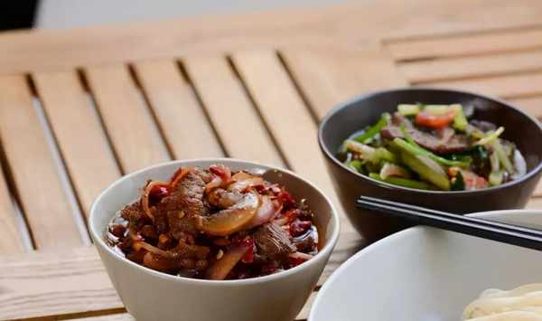 4.正宗的新疆拌面一定是面菜分離的,一碗菜,一盤子面。這種分離是短暫的,俗話說小別勝新婚,你將他們交融在一起的一剎那,空氣中也會有一種特別的味道。