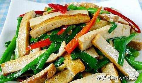 3.一直翻炒。待香幹泡在湯裡變軟變透明後,放入韭菜,翻炒均勻,待韭菜變軟後起鍋。