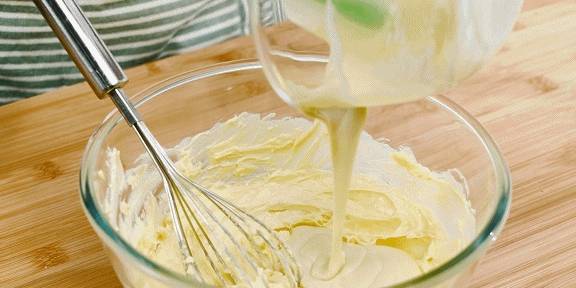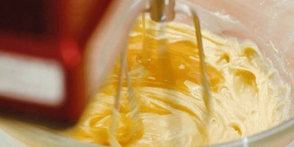 1、90g軟化黃油加入60g糖粉,最低速攪打均勻,分次加入22g(約1個蛋黃)蛋黃液,攪拌均勻