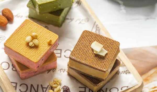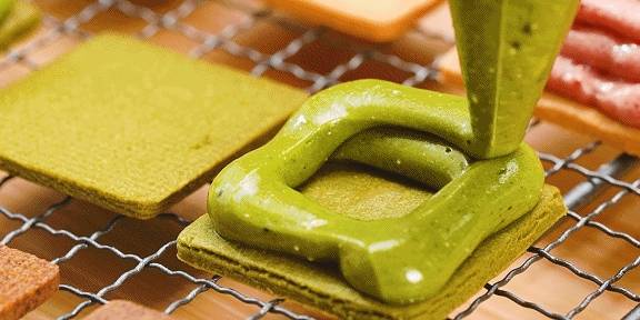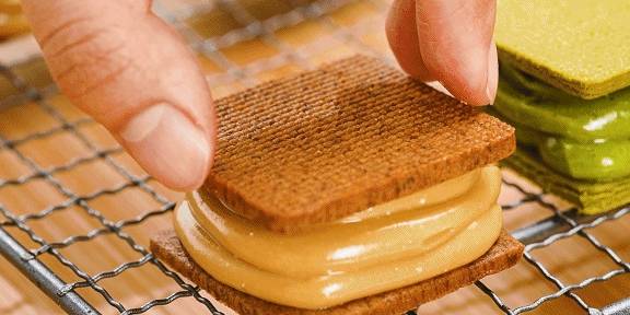要是喜歡紮實點的口感,將抹平整的曲奇放入冷凍,自制高階版威化冰淇淋,搞定!