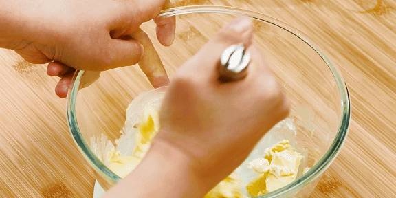 2、白巧克力一定要回到正常的室溫再操作,如果剛融化結束就倒入黃油和奶油奶酪中,餡料會變軟塌