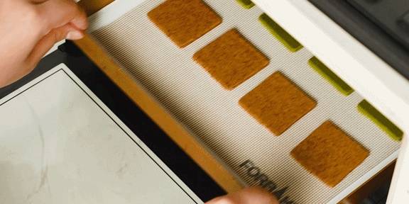 放入有紋路的油佈上,送入預熱好的烤箱裡,上下火160℃,烘烤12分鐘