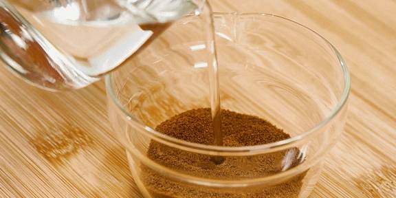 6、基礎霜部分也是分為等量3份,小碗裡倒入4g咖啡粉、4g水,調整成咖啡液