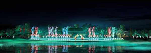 國潮漢風夜彭城,大型湖島實景演出《彭城風華》以水為媒、以島為臺、以船為席,邀您在詩意的蘇軾文化山水長卷中,進行一場穿越時空的水上行浸式夜遊體驗。