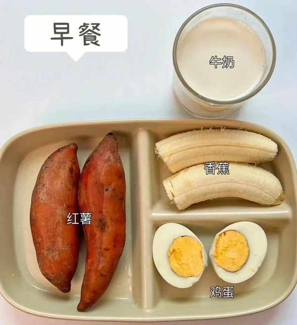 第4天早餐又喝牛奶+紅薯+香蕉+雞蛋。這個飽腹感非常強,吃完的話到12點瞭還不餓。