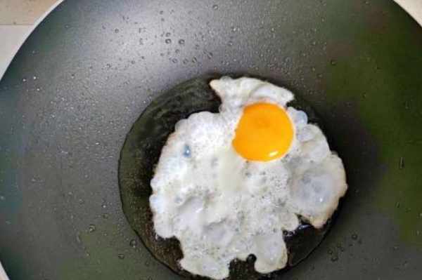 步驟2鍋中倒入適量刀嘜玉米油,打入一個雞蛋煎熟。