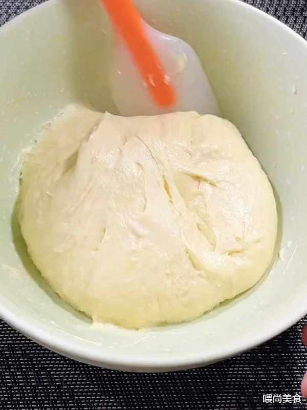 2、這個面團比較軟,用鏟子攪拌均勻,上面抹上一層食用油,蓋上蓋子醒發兩倍大。