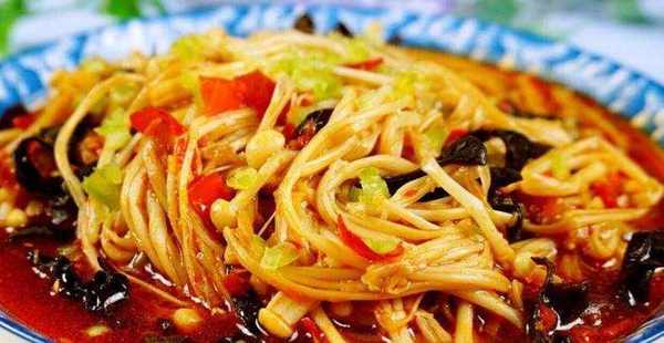 原料:金針菇350克,黑蘑菇4朵,泡發紅辣椒2條,生薑2片,大蒜1頭,洋蔥1克,郫縣辣椒醬2茶匙;魚露:醬油2茶匙,醋2茶匙,黃酒1茶匙,白糖2茶匙,水淀粉2茶匙;