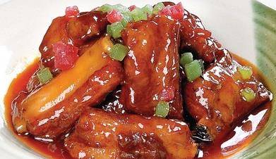 配料:排骨500克,大蔥10克,薑10克,熟芝麻10克,鹽5克,雞精3克,雞粉3克,胡椒粉5克,花椒10克胡椒粉、番茄醬、白醋10克、白糖15克、淀粉20克。