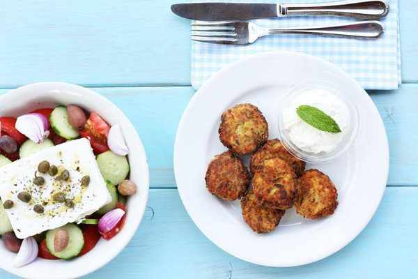 不論是球狀或餅狀,到瞭希臘決不能錯過這道開胃菜。櫛瓜糊通常以磨碎或打成泥的櫛瓜,拌入蒔蘿、薄荷或者其他秘密綜合香料而成,吃的時候搭配黃瓜酸奶醬增添清爽感。
