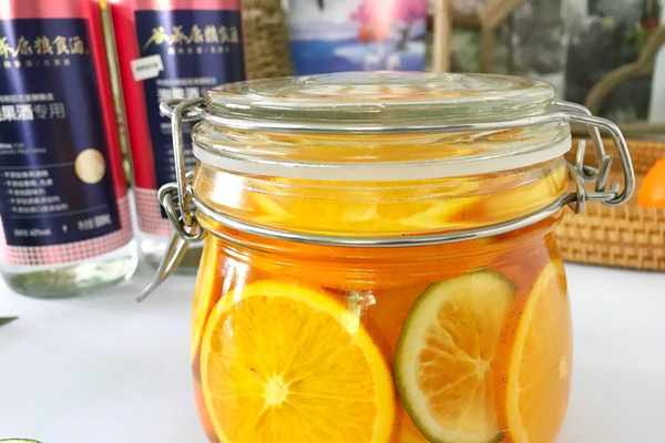 3、倒入沒過橙子的糧食酒,蓋上蓋子,密封保存1-3個月即可享用。