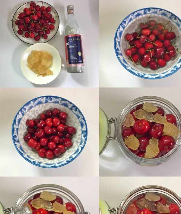 【材料】:櫻桃600克,冰糖150克,糧食酒500克