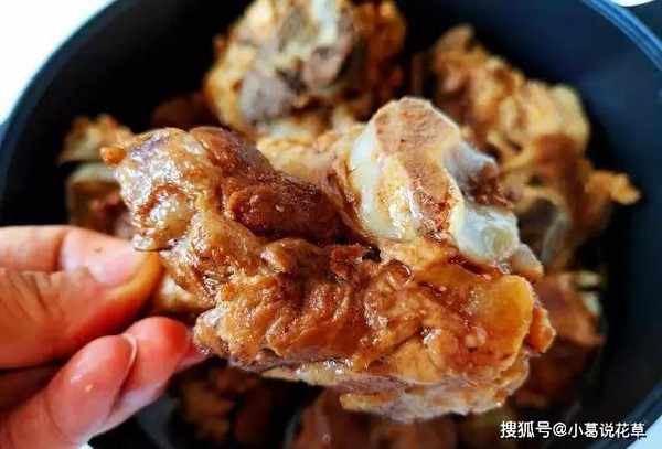 3:放一根大骨頭翻炒幾下,加入幾勺料酒去除肉腥味!