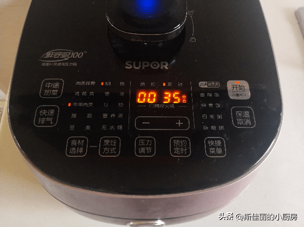 5. 按下 電壓力鍋上燉煮牛羊肉的功能鍵;