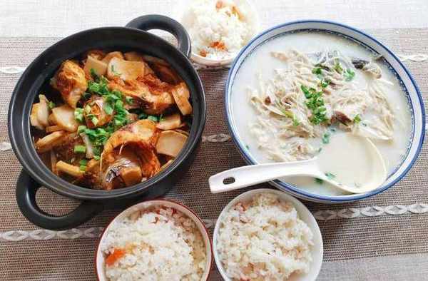 鯽魚豆腐湯:鯽魚煎一煎後,加入開水,豆腐、薑、蔥同燉,約15分鐘;