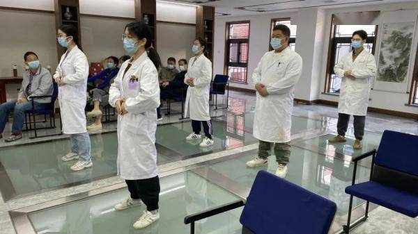 2022年,上海嶽陽醫院醫生護士演示“呼吸六字訣”養生操。許曉青 攝
