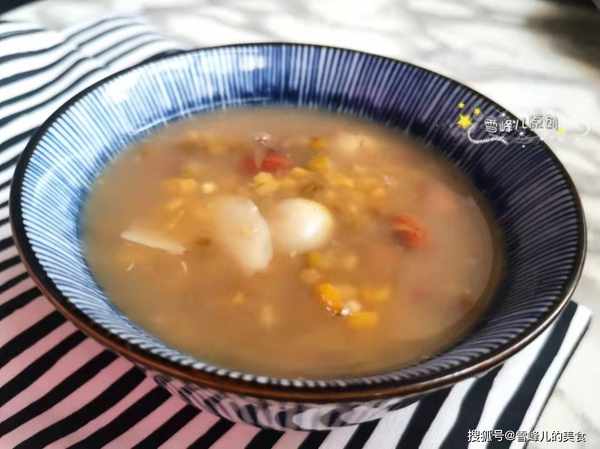 1,玉米碴子,蓮子,百合,綠豆,花豇豆全部搭配好,用清水洗凈。