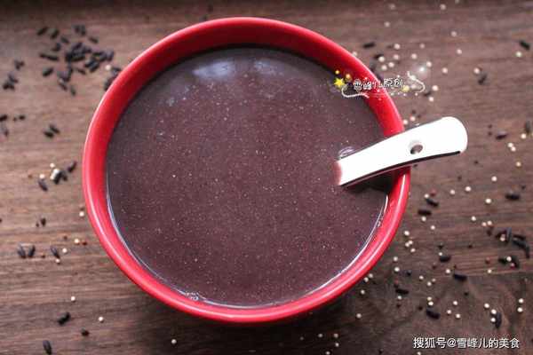 3,時間到瞭,藜麥黑米紅棗黑枸杞相搭配的堿性米糊就做好瞭,香甜細膩特好喝,一定要試試。