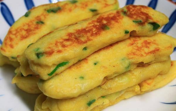 7.先不要開火,要不然底部會變得很焦,底部定型之後,我們慢慢地將山藥餅翻個面。這個餅熟得特別快,中小火烙,翻面,兩面金黃之後就可以出鍋瞭。