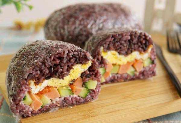 紫米飯團是一種比較方便的早餐,營養口感兼備,做好之後即使來不及吃,隨手拿上一個上班或者上學的路上吃,都是很方便的。上班族的首選。