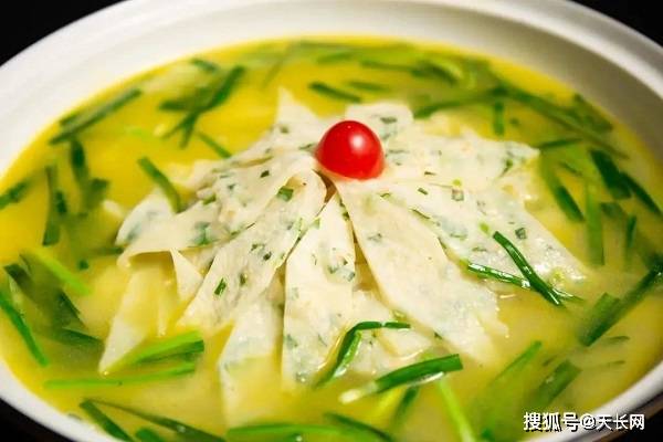 5、將面皮下熱湯鍋中燒開加鹽、韭菜段略煮兩分鐘,加胡椒和味精。食用前在碗中加入適量麻油即可。
