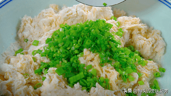 2.攪拌成面絮狀,加入一把蔥花,下手揉成面團。