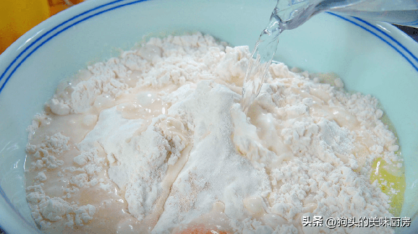 1.300克面粉放入盆中,磕入一個雞蛋,加入2克酵母,用160毫升溫水和面,一邊倒一邊攪拌。