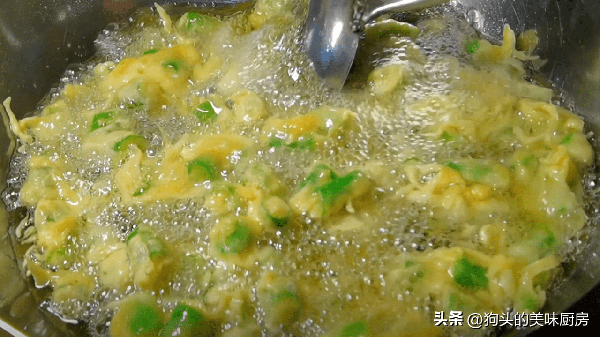 7.下入線椒段。不要翻動它,讓它定個型。
