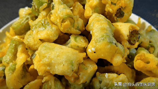 這次要分享的辣椒做法老少皆宜,味道可香瞭,在我這裡大多數把它當做下酒菜或者小零食,因為很香。外觀裹著一層酥皮,顏色金黃誘人,看著就很酥脆,裡面是一段辣椒,經過高溫油炸之後辣度稍微減少瞭一點,吃著很香,非常爽,有一種吃辣椒的快感,吃完還要嘬手指。調味料跟燒烤口味差不多,吃著很過癮。這道菜端上桌基本就是空盤下桌的瞭。
