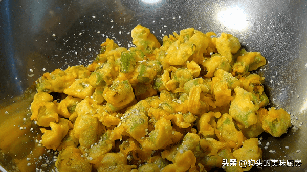 11.炸好的食材放入盆中,調入適量的鹽,再加適量的孜然粉,一把熟芝麻,翻拌均勻就可以瞭吃瞭。