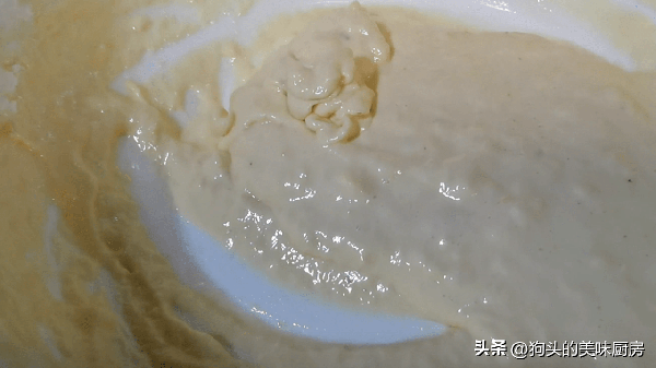 4.接著把剩下的脆炸粉放入盆中,調入適量的清水,攪拌至粘稠。