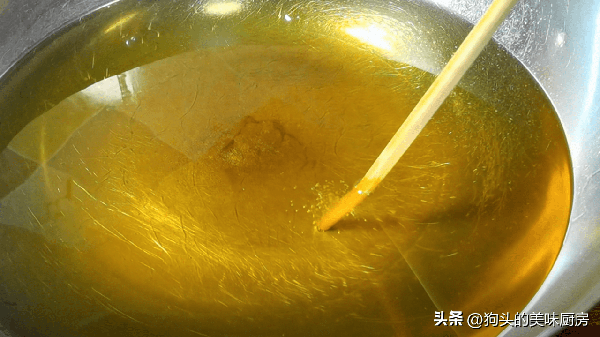6.起鍋燒油,用筷子紮進油鍋,筷子四周冒密集的泡泡說明溫度達到瞭。轉小火。