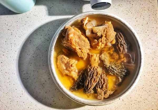 將虎乳菌、羊肚菌、排骨放到砂鍋煮開,小火煮1小時;