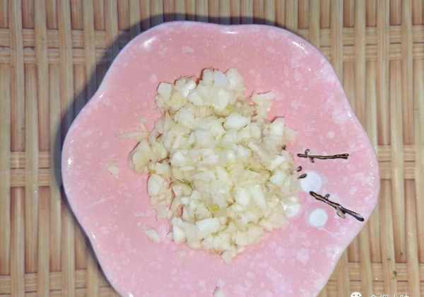 3.蒜放在清水中洗凈,將它的表皮去掉,去皮後的蒜將它剁成泥;