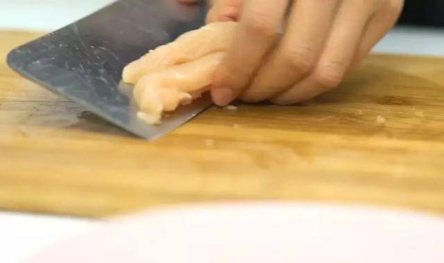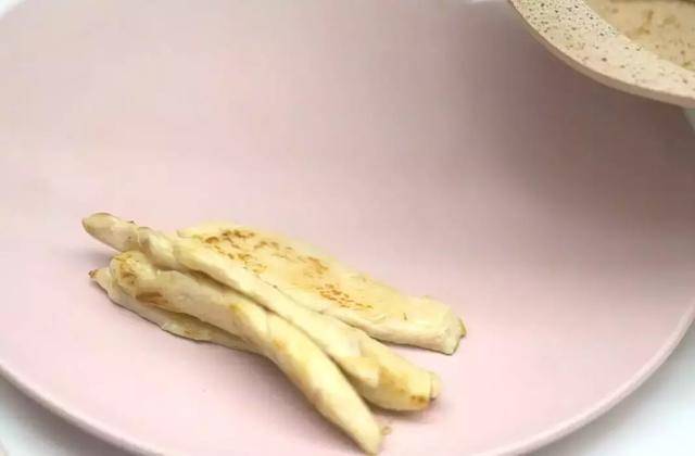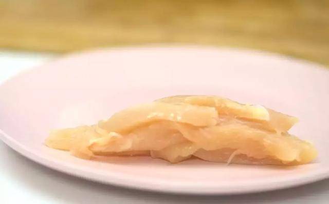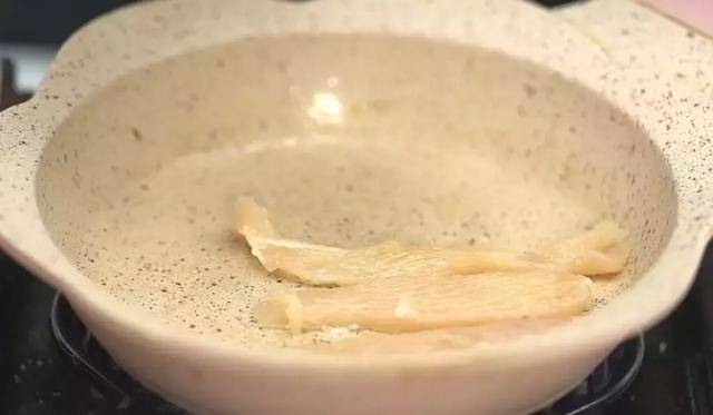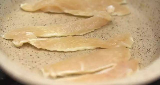 將雞身材肉煎一下,撒少許鹽,煎好的雞身材肉備用