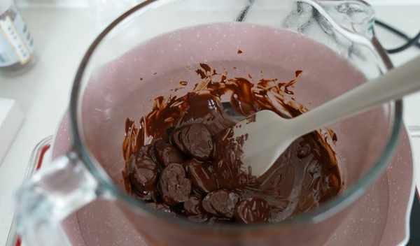 2、在用熱水加熱的方法將準備好的巧克力融化;