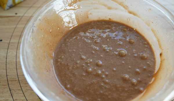 8、面糊準備好後,將其倒入到容器中,形狀可以根據自己的喜好;